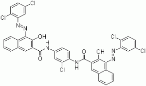 Engels alias: CIPigment Red 144; PR144; Cromophtal Red BRN; 2-Naftaleencarboxamide, N, N '- (2-chloor-1,4-fenleen) bis [4 - [(2,5-dichloorfenyl) azo] - 3-hydroxy (4E, 4'E) -N, N' - (2-chloorbenzeen-1,4-diyl) bis {4- [2- (2,5-dichloorfenyl) hydrazinylideen] -3-oxo-3,4,4-dihydronaftaleen-2-carboxamide}; N- [2-chloor-4 - [[4- (2,5-dichloorfenyl) azo-3-hydroxynaftaleen-2-carbonyl] amino] fenyl] -4- (2,5-dichloorfenyl) azo-3- hydroxynaftaleen-2-carboxamide; Grote moleculaire rode BR
